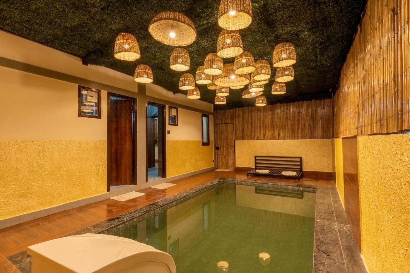 Situated in Bhīm Tāl, SaffronStays Kurmavana, Bhimtal - luxury cottage with pool and lawn -clear roads features accommodation with private pool, free WiFi and free private parking for guests who drive. Guests can benefit from a patio and an outdoor fireplace. The property is non-smoking and is located 2.8 km from Bhimtal Lake.