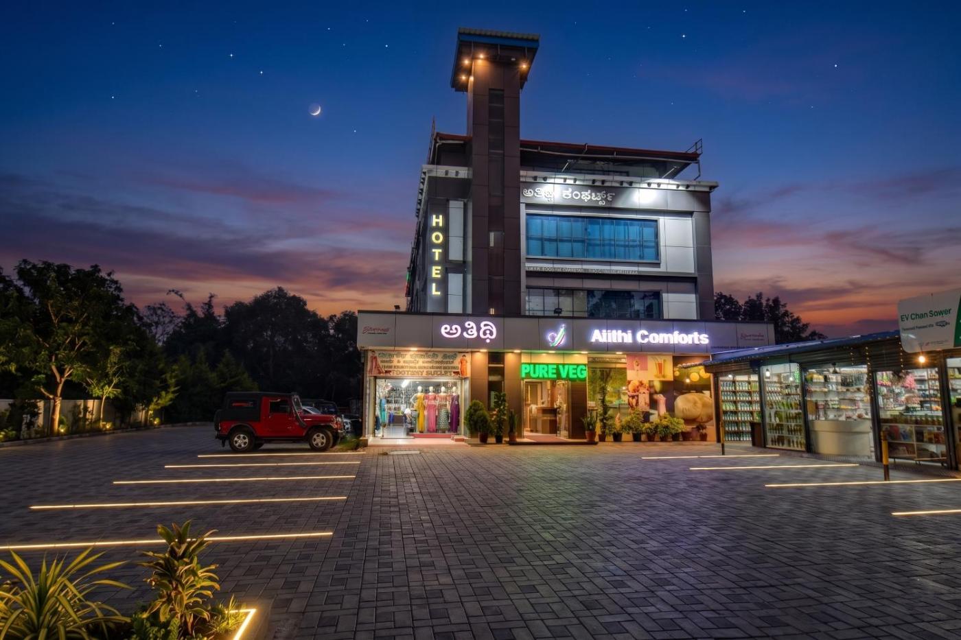 Set within 28 km of Madikeri Fort and 28 km of Raja Seat, HOTEL ATITHI COMFORTs features rooms in KushÄlnagar. Featuring a garden, the 3-star hotel has air-conditioned rooms with free WiFi, each with a private bathroom. The hotel offers a terrace and a 24-hour front desk.